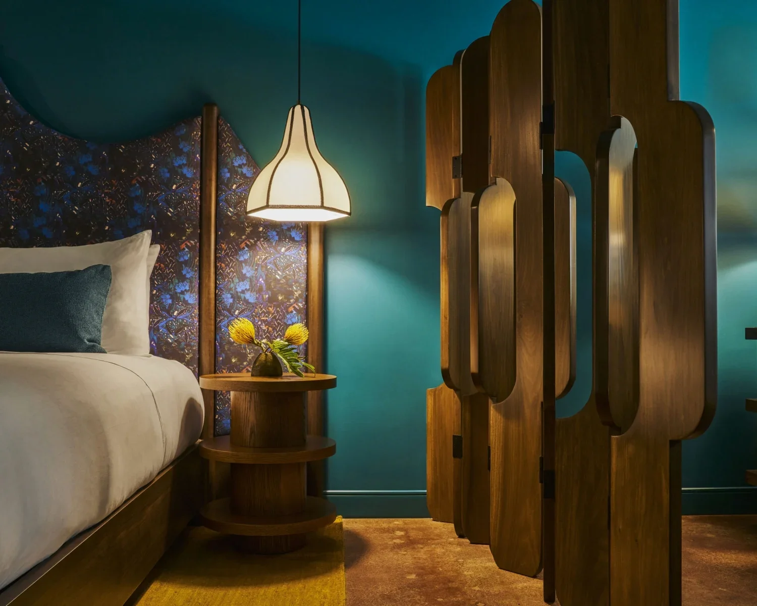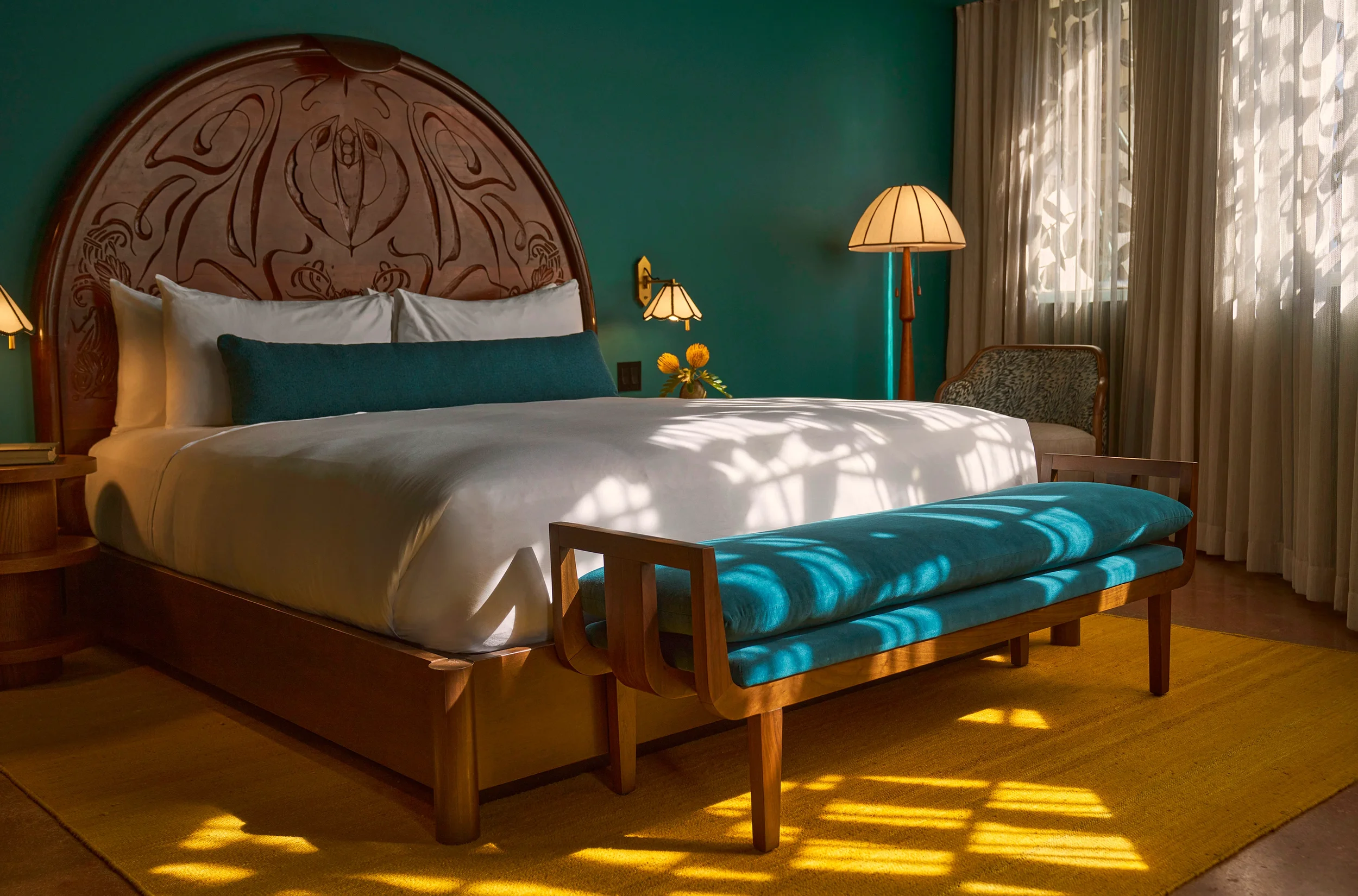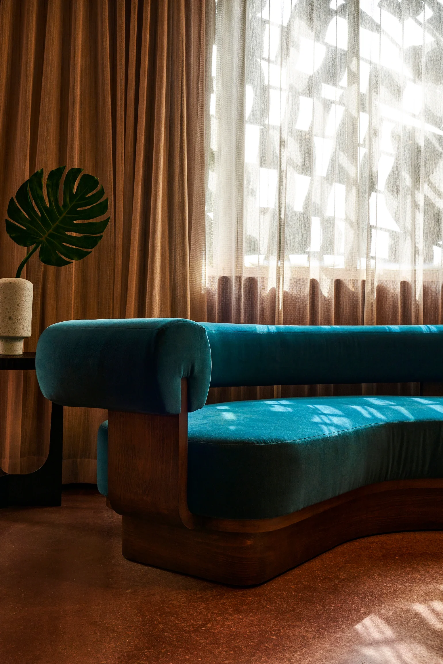 Le projet exigeait de marier des courbes architecturales audacieuses à une ébénisterie entièrement sur mesure. Les formes sculpturales en bois devaient conserver toute leur élégance tout en demeurant parfaitement stables dans un climat côtier chaud et humide — un défi qui demandait autant de maîtrise artisanale que d’ingéniosité technique.