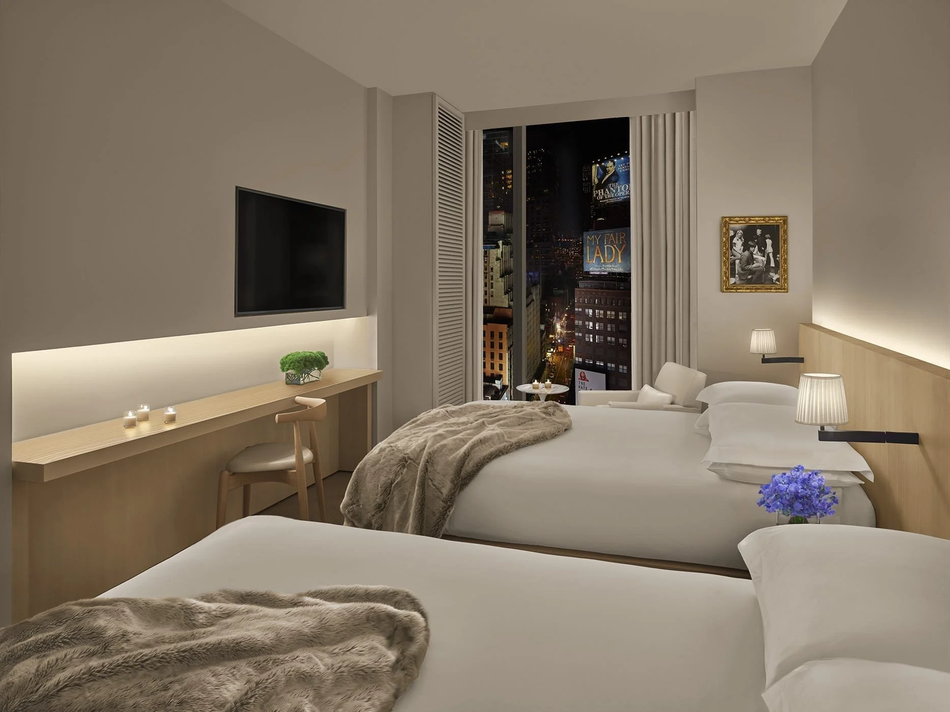 Le motif de placage des têtes de lit exigeait une parfaite continuité visuelle, avec un alignement précis du grain sur toute leur longueur. Chaque panneau a été plaqué à la main et brossé pour créer un rendu distinctif et parfaitement cohérent.